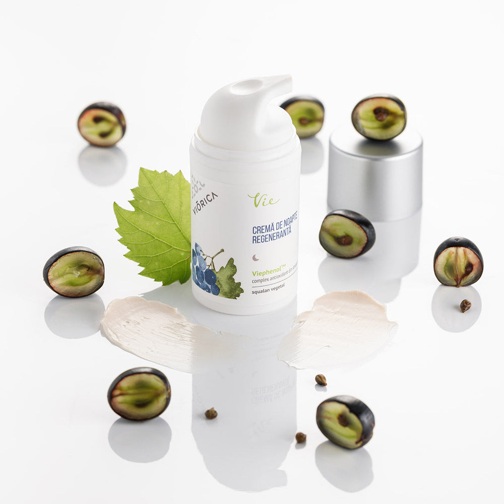 Pentru a obține cele mai bune rezultate și o îngrijire completă, îți recomandăm să folosești Cremă nutritivă Vie și Cremă regenerantă de noapte, Vie în rutina ta zilnică.