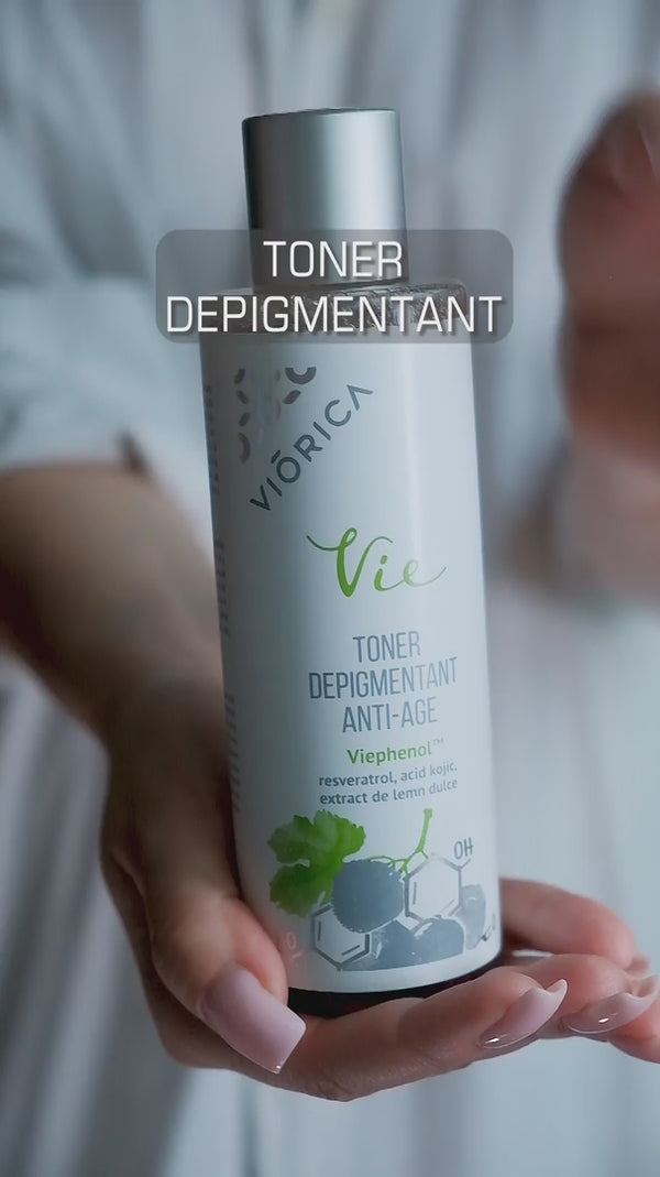 Complexul antioxidant Viephenol™ susține regenerarea celulară și previne fotoîmbătrânirea. Acidul kojic și extractul de lemn dulce exercită efect depigmentant intensiv, estompând petele pigmentare prin inhibarea sintezei de melanină.