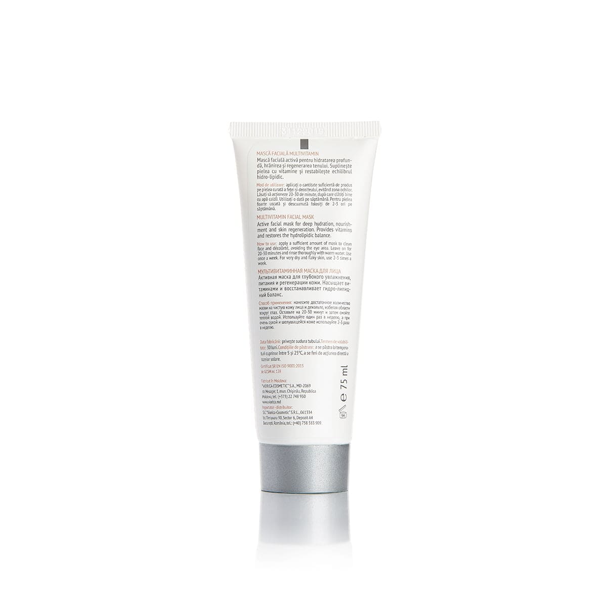 Masca cu vitamine pentru ten uscat este destinată uzului săptămânal sau o soluție rapidă pentru revitalizare. Produsul este infuzat cu ulei de nuci și vitaminele A, E, B3, care sunt de importanță primară pentru sănătatea și aspectul pielii. Amestecul activ de ingrediente are efect de emoliere, hidratare și protecție, revigorează fermitatea tenului, minimizează aspectul ridurilor, îmbunătățește fluxul sanguin și combate radicalii liberi în epidermă.